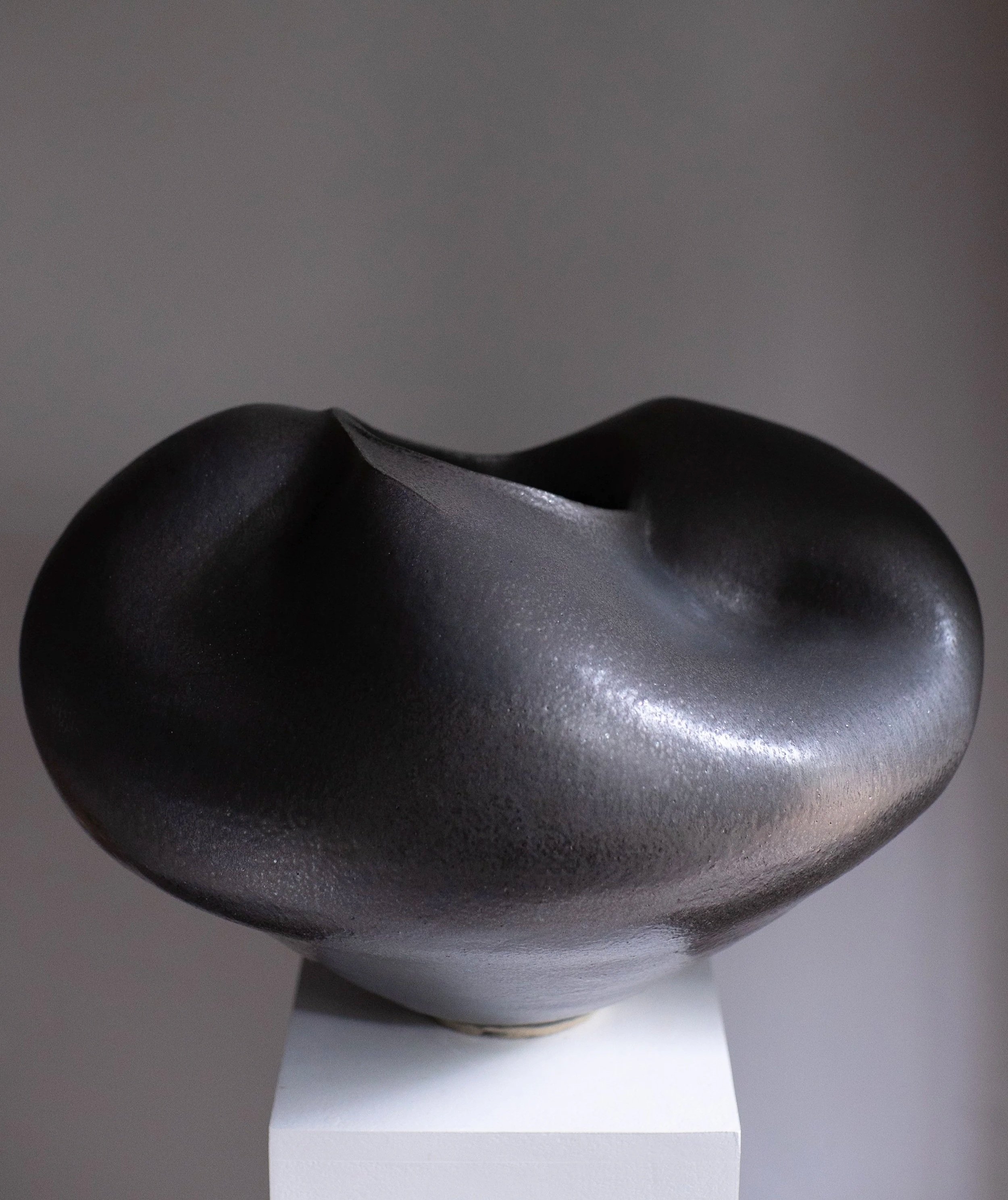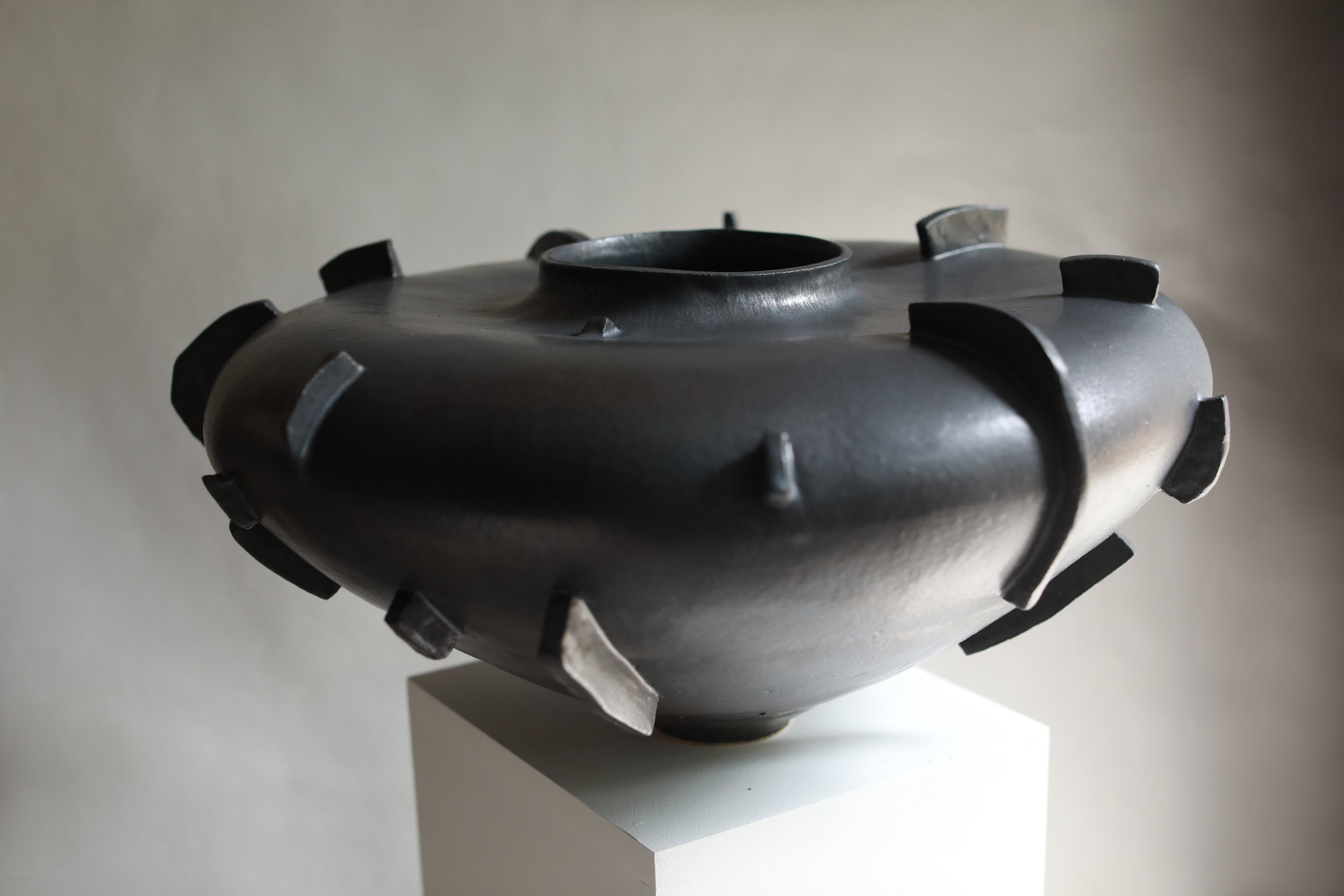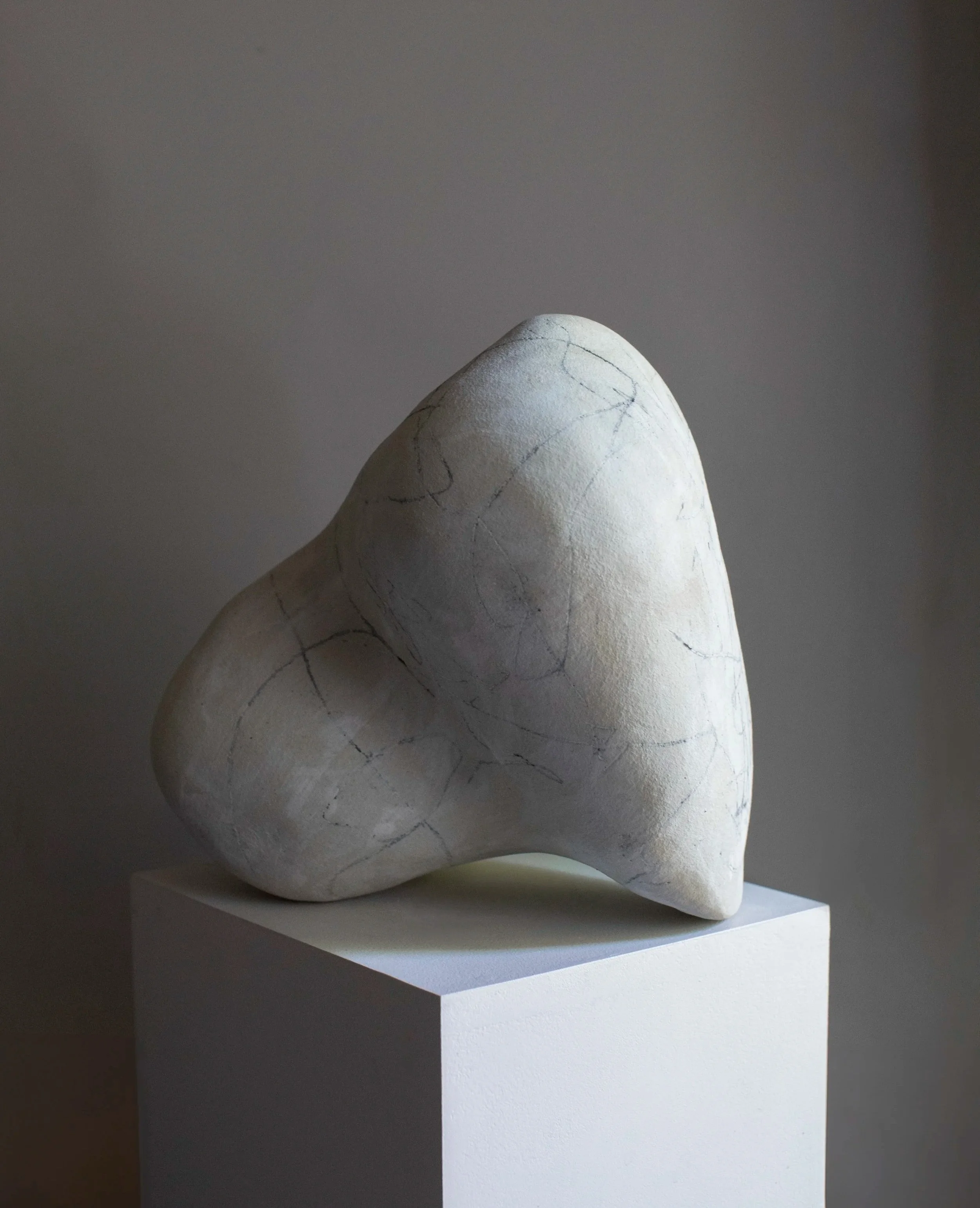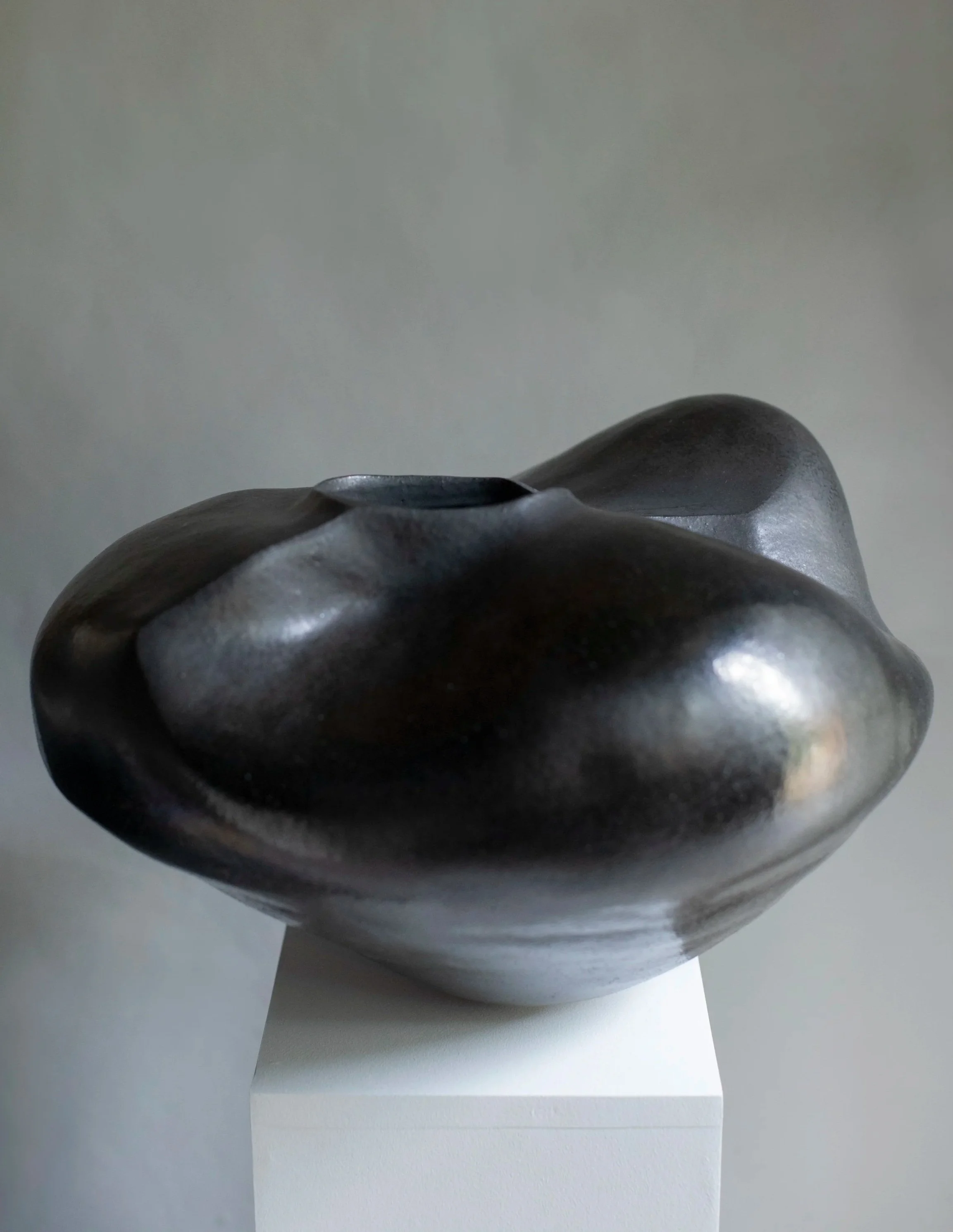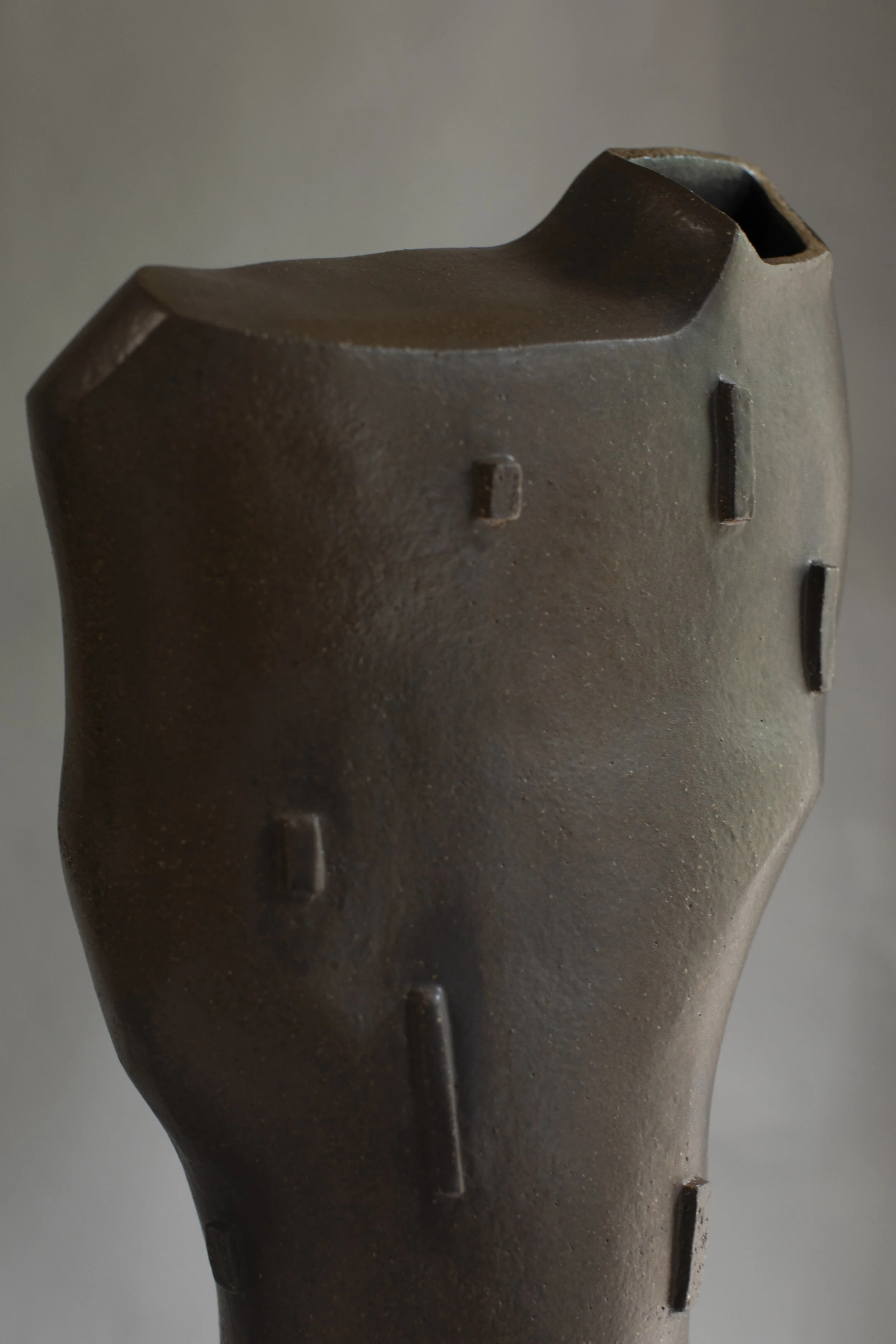 These hand-built vessels carry the weight of their accumulated presence. Each work speaks the memorial language of the body. The forms are build then enduring the impact, through scratching, slapping, leaving marks that the clay records.